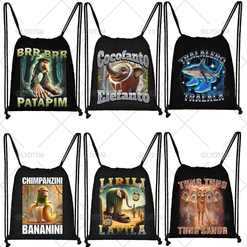 Итальянский Brainrot Tralalero Сумка на шнурке Chimpanzini Bananini Tralalero Tralala Рюкзак Детская сумка для книг Держатель для обуви для путешествий