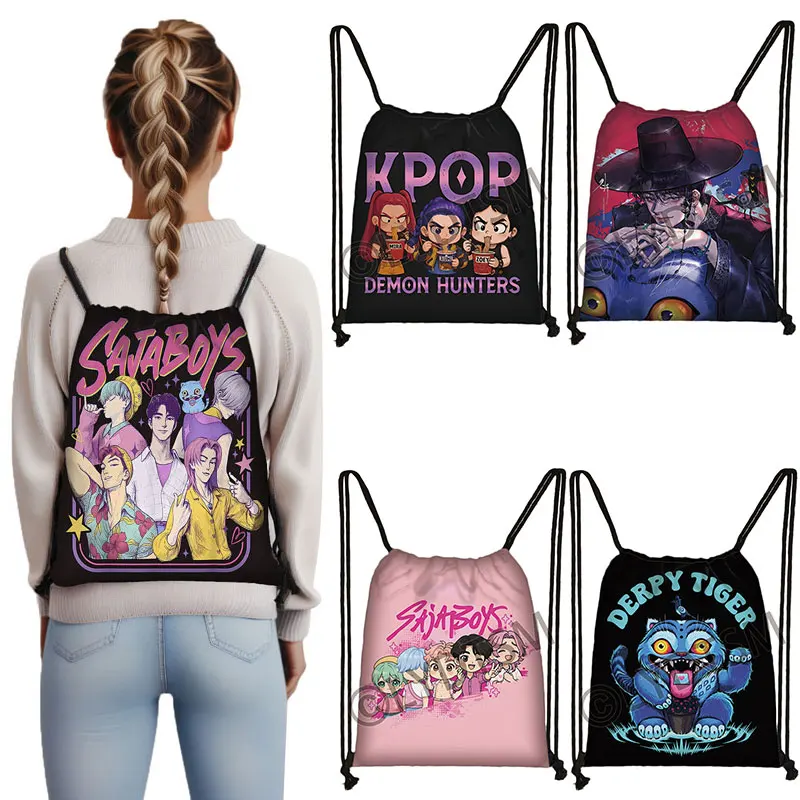 KPop Demon Hunters Сумка на шнурке с принтом Сумки в стиле хип-хоп для путешествий Mira Rumi Zoey Держатель для обуви Сумка для хранения Подростковые школьные сумки