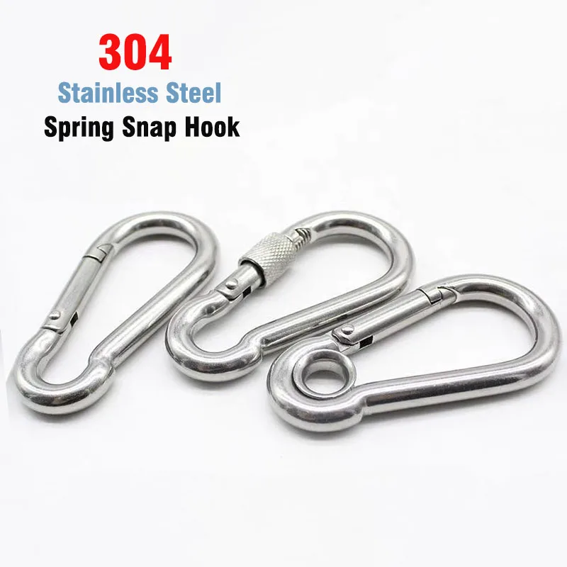 Пружинный карабин из нержавеющей стали 304, сверхмощные карабины для кемпинга, пешего туризма, металлические зажимы для веревочной цепи, брелоки, соединительная пряжка