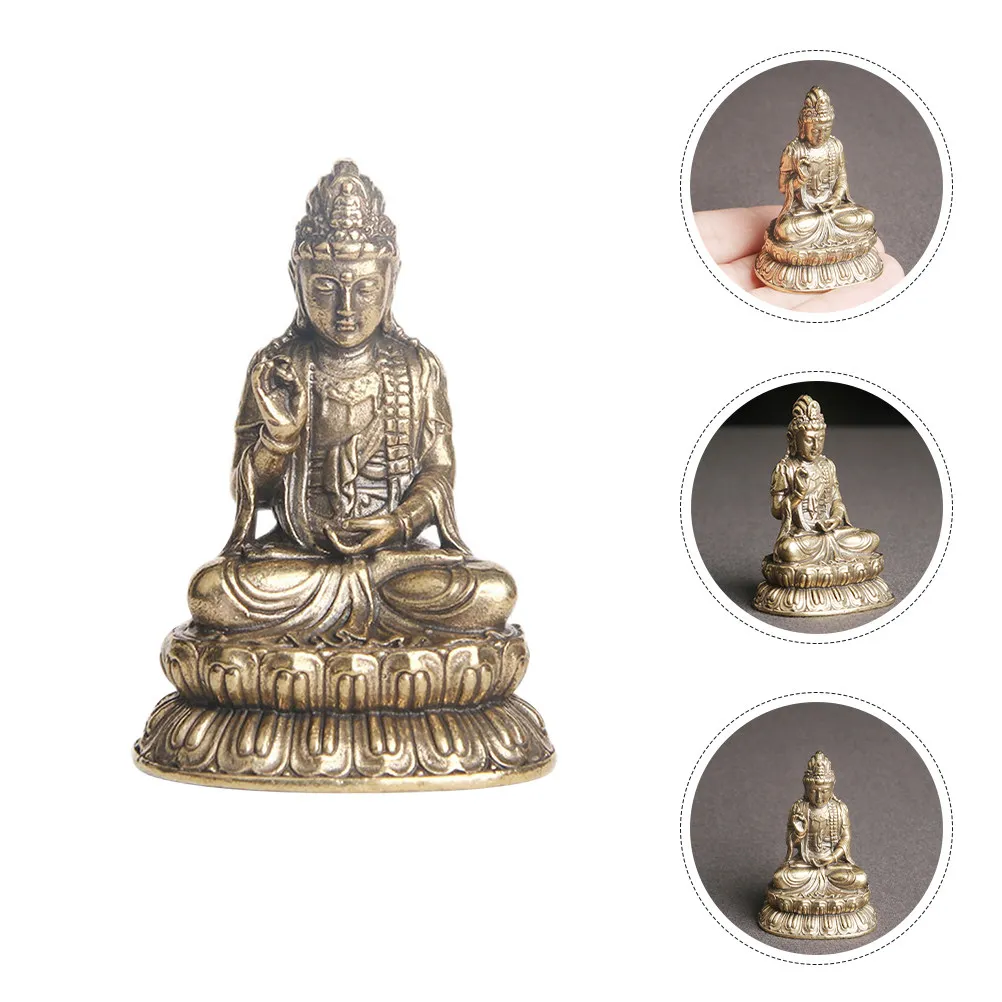 Винтажная латунная скульптура Будды, ретро-украшение для рабочего стола, изысканная компактная статуэтка Будды, декор для дома, латунное изделие ручной работы