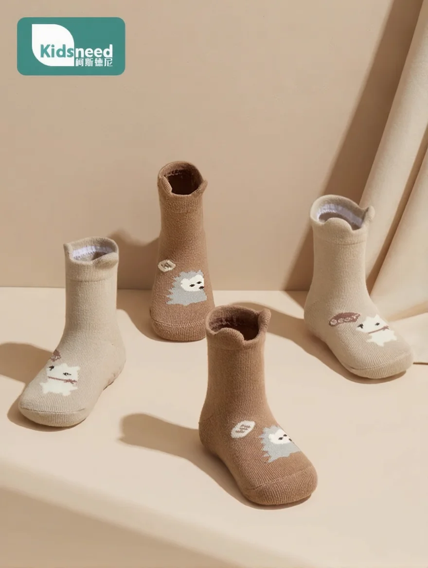 3 пары детских нескользящих носков, теплые толстые детские носки средней длины, удобные носки для малышей, носки для мальчиков и девочек от 6 месяцев до 3 лет