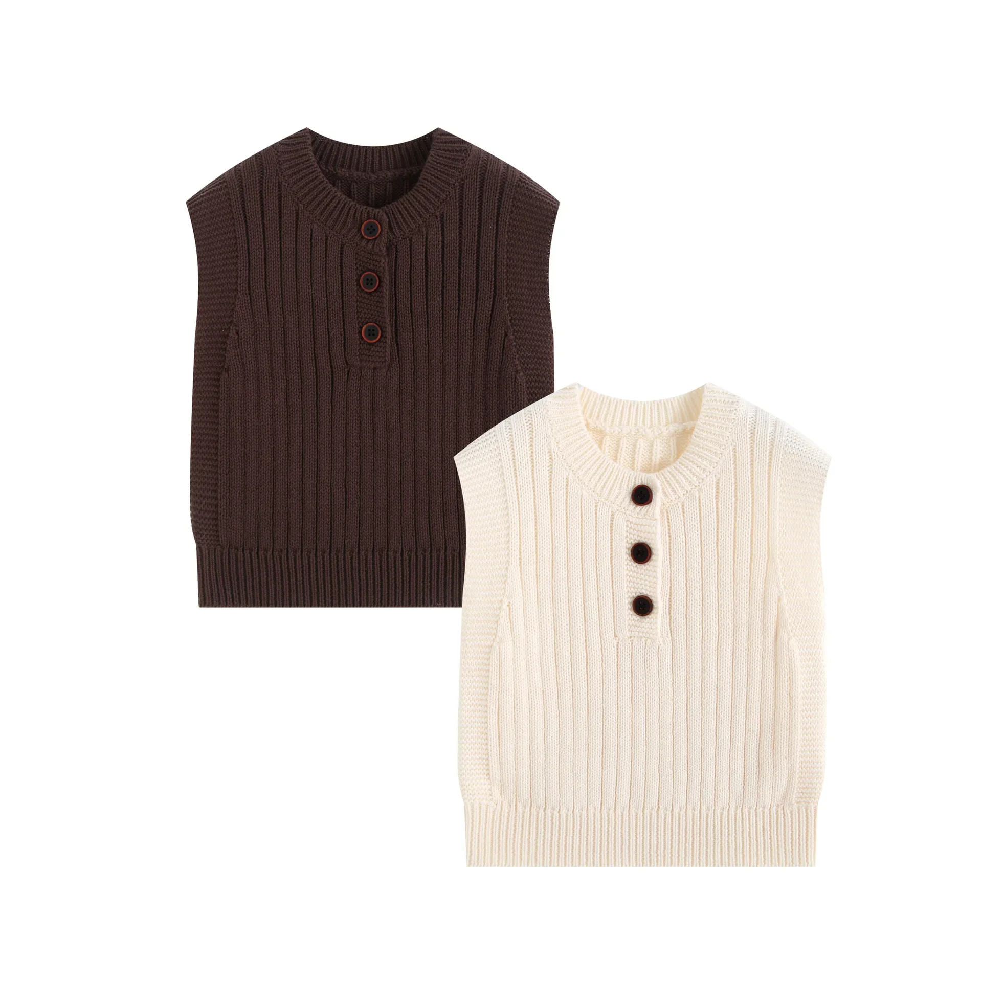 Весенний вязаный свитер для маленьких девочек и мальчиков, жилет для детей 1–3 лет, вязаный декор в рубчик на пуговицах для новорожденных, теплая удобная эластичная верхняя одежда с круглым вырезом
