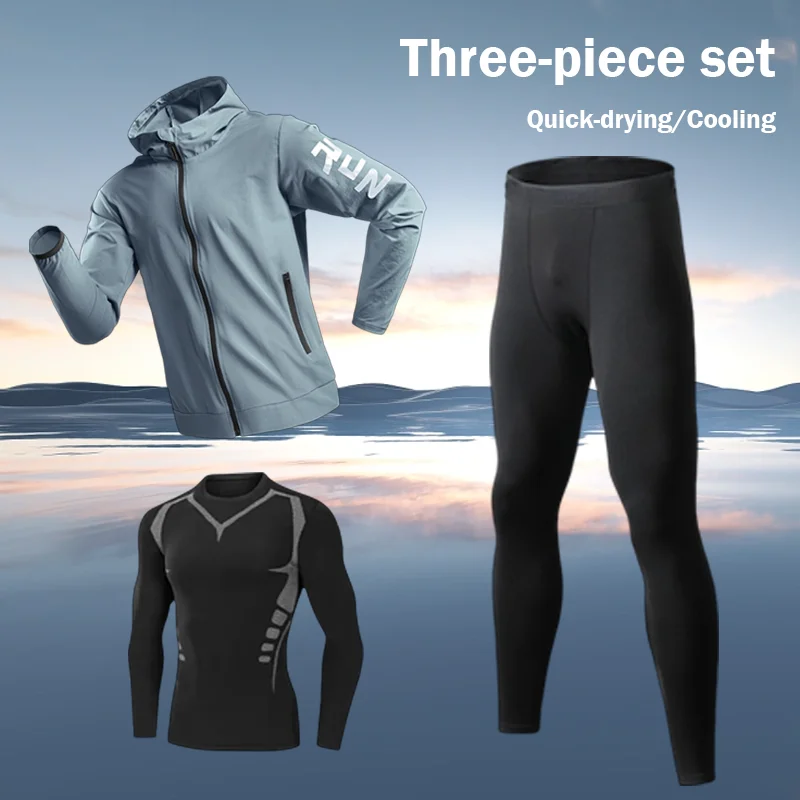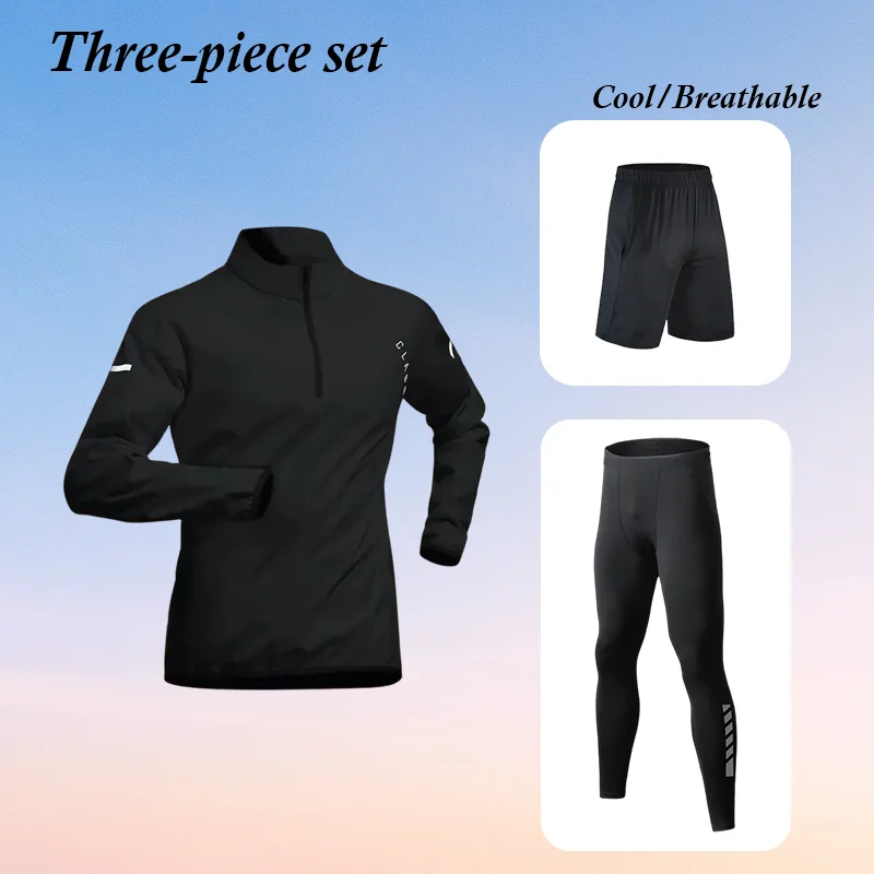 Мужской комплект спортивной одежды из трех предметов для бега, весна-лето, быстросохнущий, с длинным рукавом, профессиональный, для активного отдыха, тренировок, альпинизма, фитнеса