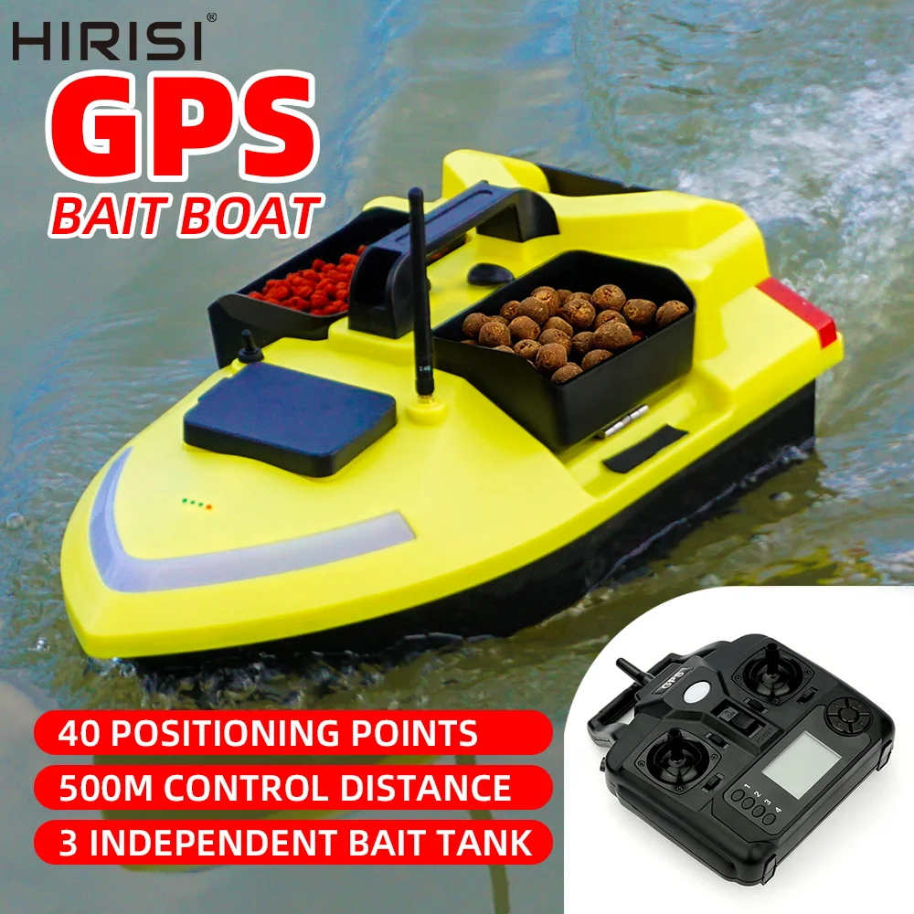 Hirisi GPS Рыболовная лодка с приманкой 500 м Пульт дистанционного управления Лодка с приманкой Двухмоторный эхолот Поддержка загрузки Автоматический круиз/вращение/трос