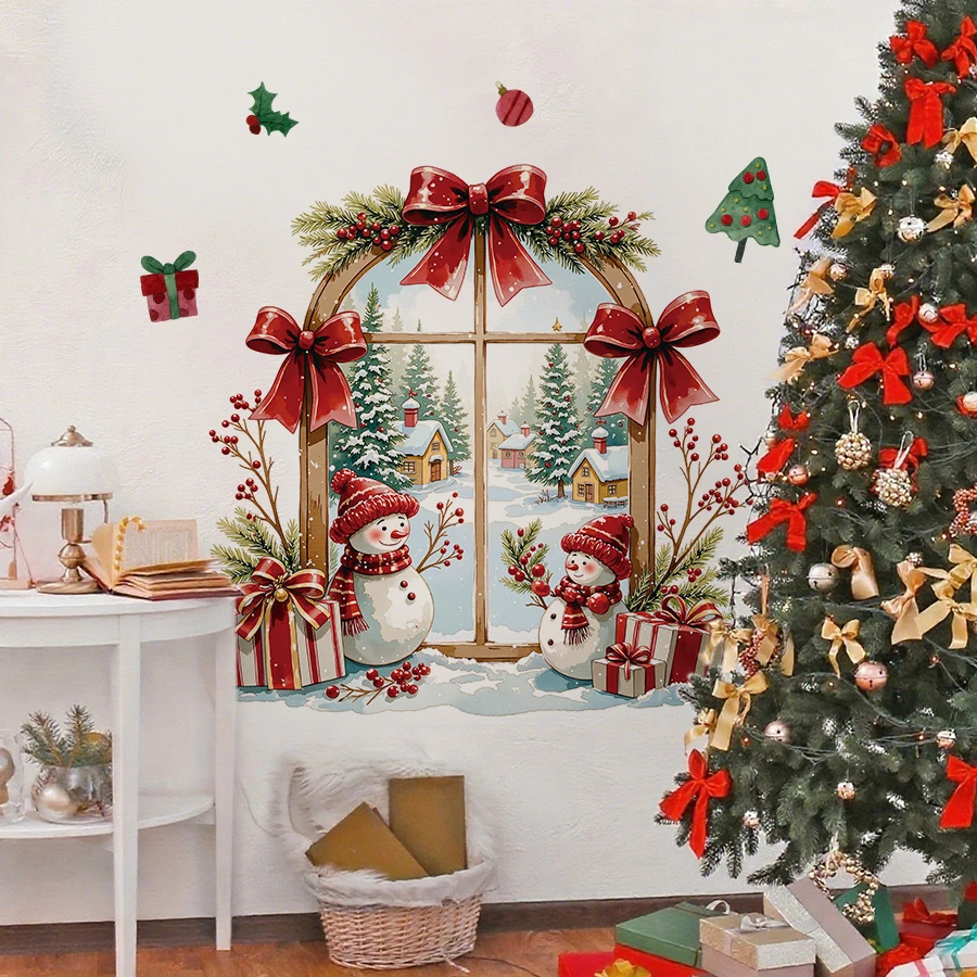 Акварель Снеговик Окно Рождественская настенная бумага Съемная виниловая наклейка для гостиной Прихожая Украшение дома Обои