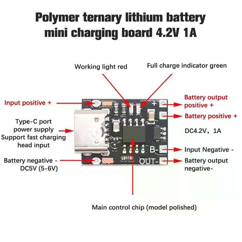 Ультра-маленькая плата для зарядки литиевой батареи 1A 3,7 В 4,2 В, модуль зарядного устройства Type-C с защитной платой
